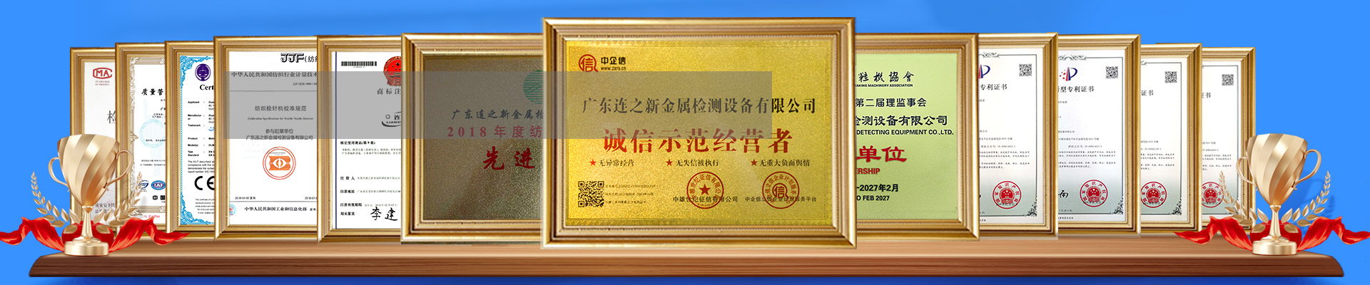 廣東連之新金屬檢測設備有限公司成立于2006年,是一家長期致力于金屬探測技術領域金屬探測儀器設備等專業研發、生產、銷售的科技型企業。擁有自主品牌:連新牌(商標注冊號5999209)及多項發明專利,擁有CE等多種產品類證書,是國家紡織檢針機校準規范JJF(紡織)080-2018起草單位。